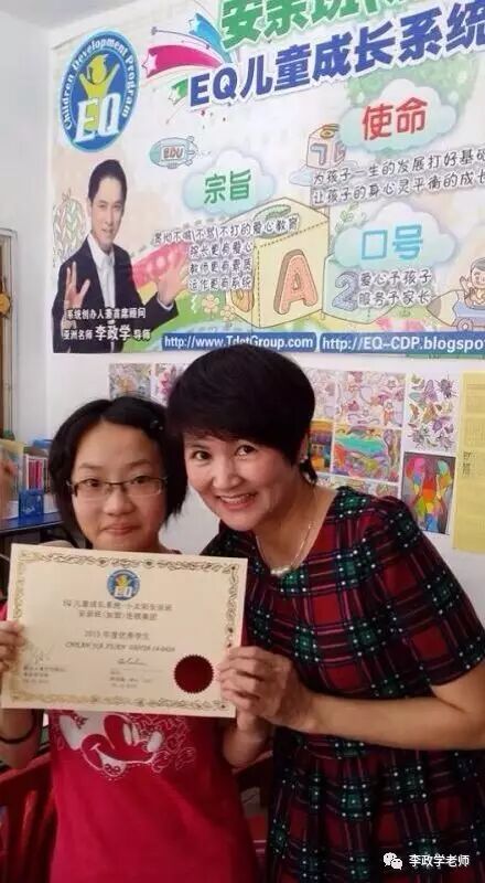后来李老师发现许多现代忙碌的家长都会把孩子送到儿童安亲班,儿童安亲班负责人与老师的教育方式会直接影响孩子的身心发展。所以在2009年开始李老师创办了【EQ儿童成长系统-(加盟)连锁集团】,培训了更多的安亲班负责人与老师,以其能帮助更多的孩子身心健康的成长。